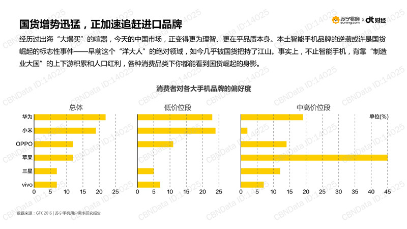 从消费者对各大手机品牌的偏好度看出,国货增势迅猛,正加速追赶进口品牌