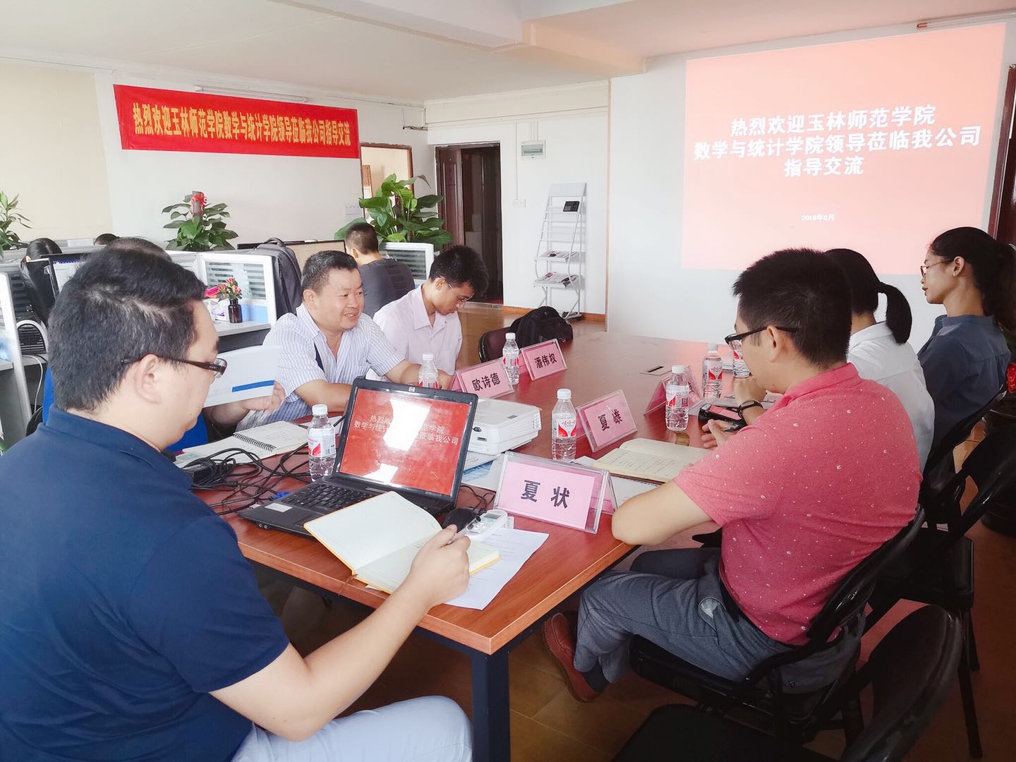 2018年6月28日,玉林师范学院数学与统计学院欧诗德副院长、潘伟权博士、韦盛学博士来到广西斯达市场信息咨询有限公司进行指导交流,公司总经理夏状率领公司管理层热情地接待了来访的玉林师范学院数学与统计学院领导们。