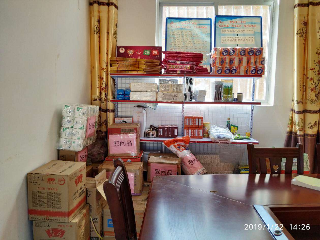 逢留村去到市集的路途较远,外去一趟比较困难,所以常集中采购物资,采购数量多,运回爱心超市较为困难。现逢留村爱心超市的物品已不多,有时无法满足村民的需要。 时值春节来临之际,村干部正商量外出采购物资,为村民提供更多物品解决生活所需时,恰逢慰问小组寒冬送温暖,赠送慰问物资,解决了他们目前的一大难题,为此,他们很感激慰问小组的到来。