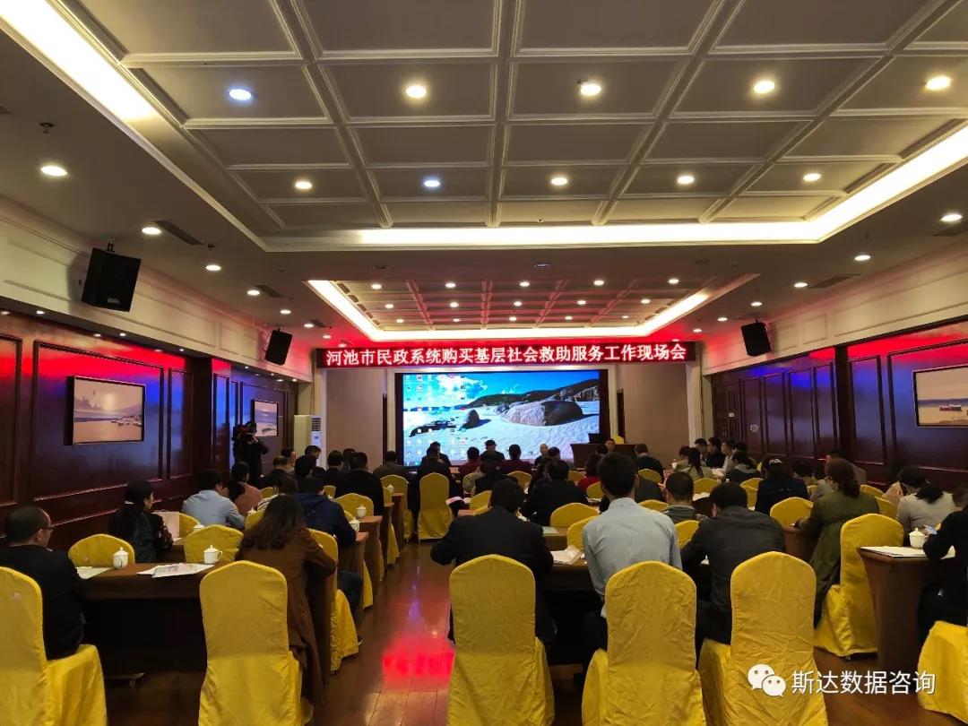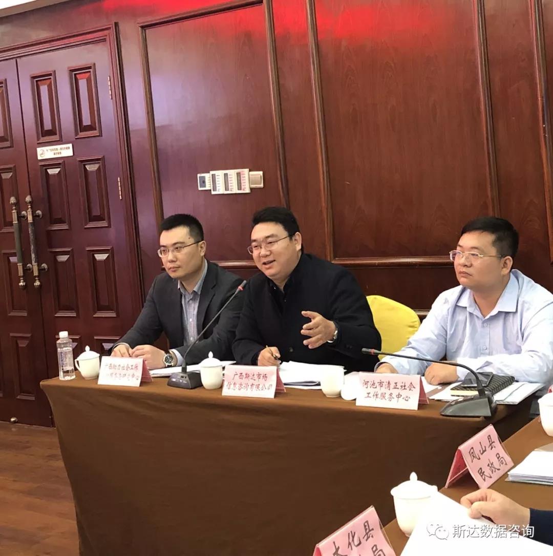 2019年3月22日上午,斯达咨询董事长夏状在“河池市民政系统购买基层社会救助服务工作现场会”上,向河池市民政局局长韦立汉、宜州区副区长黄玲丹、宜州区民政局局长杨海丽和各县区民政局领导分享斯达咨询民政业务的工作经验和推荐我司民政业务产品与服务,得到市、县区各级领导的高度认可和肯定。