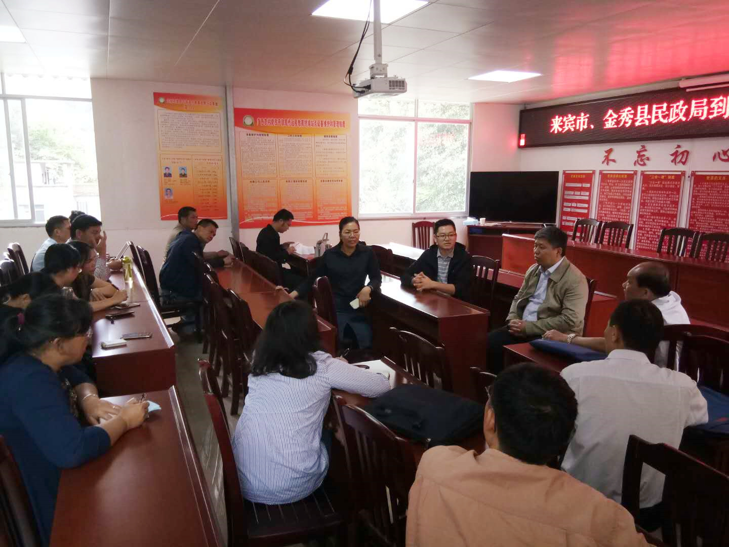 钦州市民政局周忠南副局长带领钦州市民政系统一行12人、来宾市民政局孟涛副局长,金秀瑶族自治县民政局何显贵局长、连丽玫副局长、核对中心陈丽兰主任等领导和斯达咨询夏雄副总经理、李君威销售经理出席“钦州市民政局赴来宾市学习考察政府购买第三方核查服务工作”座谈会。