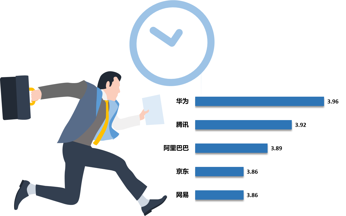 滴滴发布的《2016年度加班最“狠”公司排行榜》中,京东以23:16的平均下班时间,成为中国最“狠”公司冠军。在高德地图发布的《2016年度中国主要城市交通分析报告》中,华为每日人均加班时间长达3.96小时,成为中国企业“加班王”。