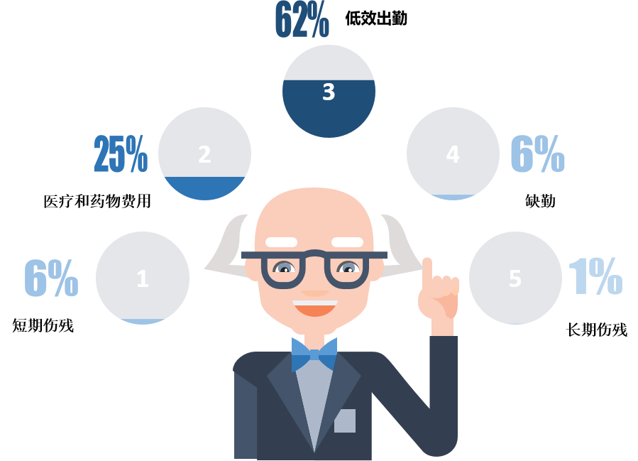 长期加班所带来身体上的伤害不容小觑,62%的加班人员表示低效出勤,38%人加班人员因长期加班而不得已就医。