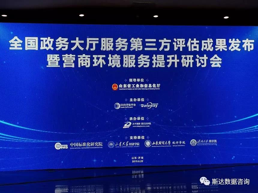 2019年6月20日,斯达咨询受邀参加由山东省工业和信息化厅指导,D3方评估平台联合零点有数主办的“公共服务第三方评估发展论坛暨营商环境提升研讨会”。来自全国各地的政府领导、专家教授及第三方评估机构嘉宾齐聚一堂,共同分享各地营商环境第三方评估经验,见证全国政务大厅服务质量监测成果发布,探讨未来第三方评估优化方向。