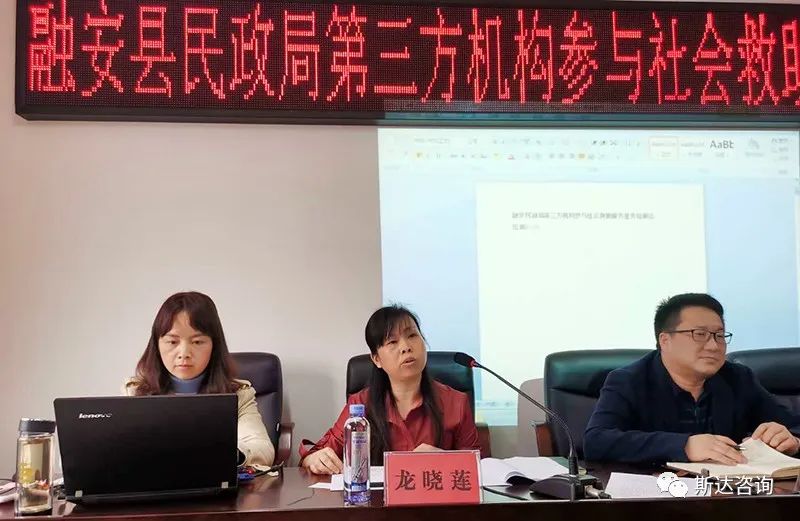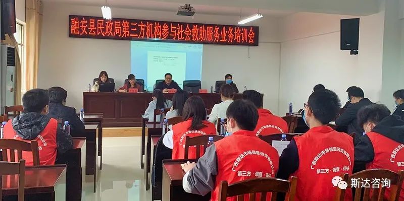2020年4月16日上午,融安县民政局第三方机构参与社会救助服务业务培训会在融安县民政局召开。融安县民政局局长吴优越、副局长龙晓莲、各股室股长,斯达咨询民政事业部1部总监沈强、3部总监周素群以及项目组成员参加了本次会议。