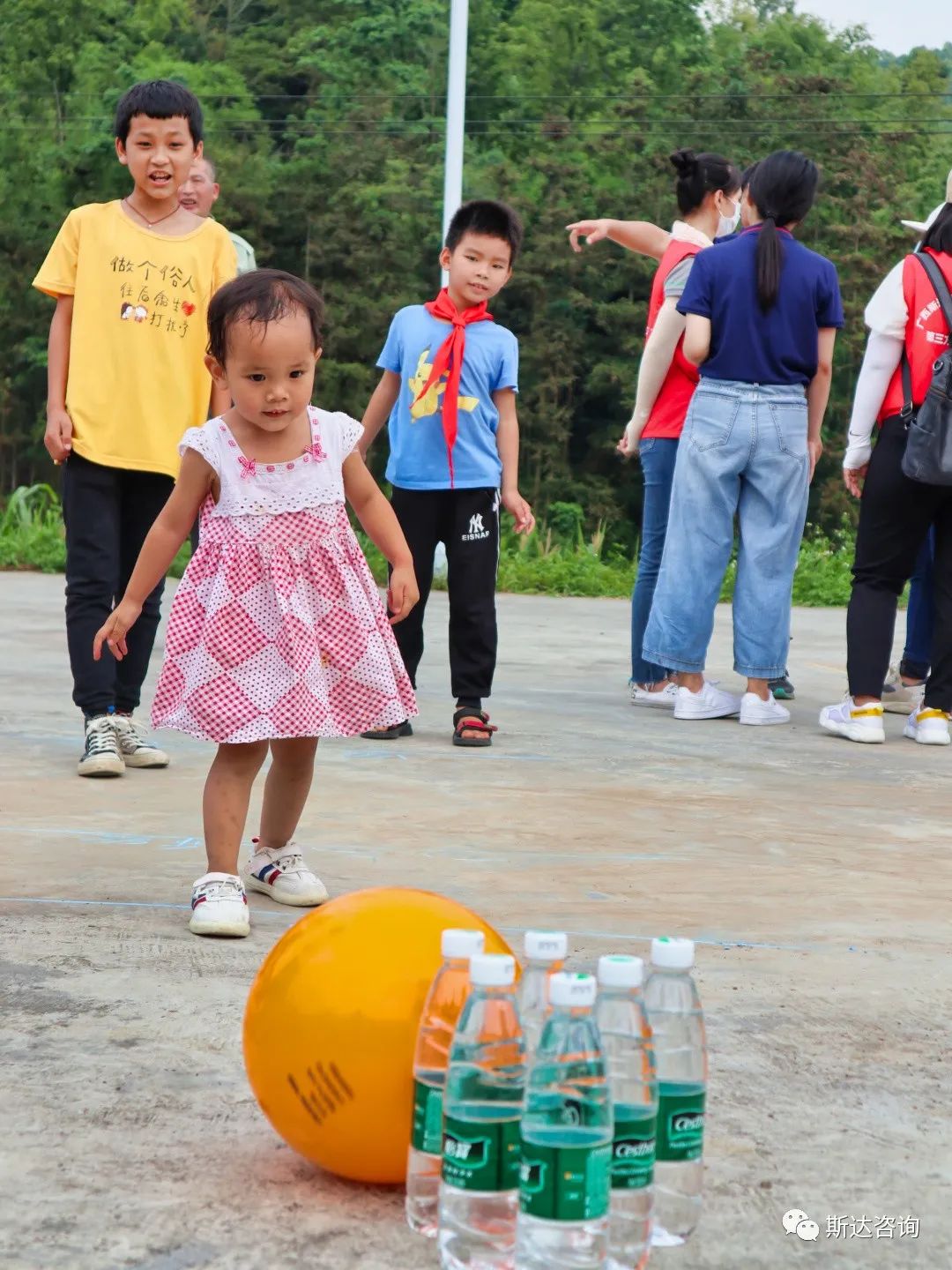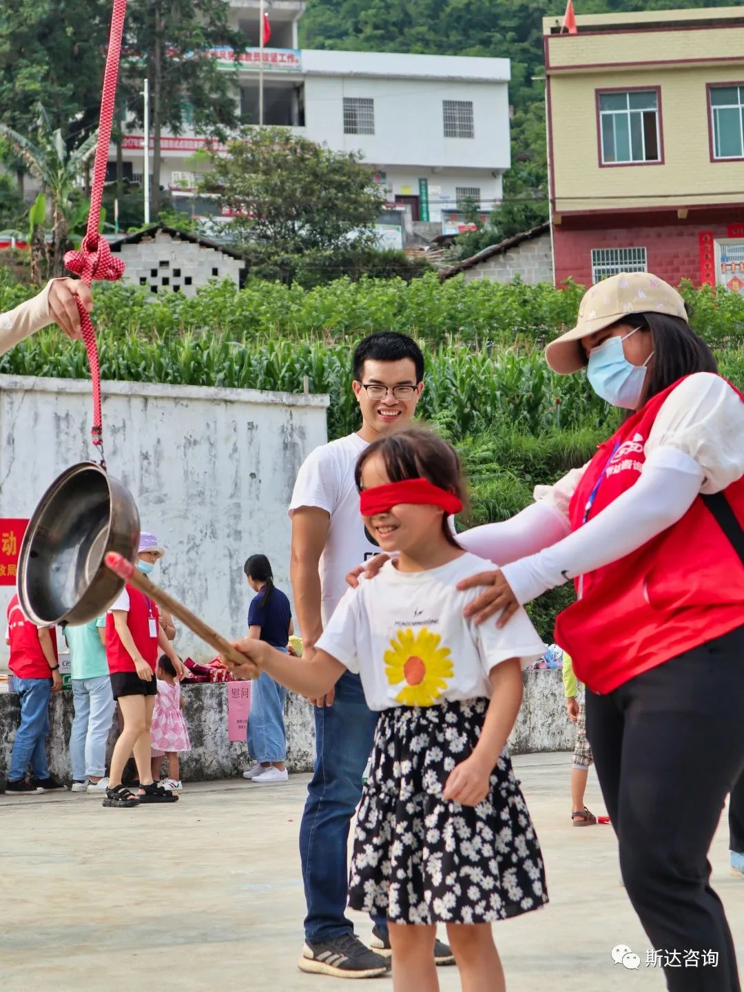 活动上,忻城县民政局副局长樊兰莹、城关镇民政办主任韦海萍、驻古麦村第一书记覃小桂、古麦村党支部书记罗国福与斯达咨询常务副总经理夏雄就孩子们目前开课复学以及留守儿童和困境儿童生活学习情况进行交流探讨,并参与到游园活动中,陪伴孩子们玩趣味游戏。盲人敲锣、打保龄球、亲子呼啦圈等游戏引得现场欢声笑语不断,极大地调动了孩子们的生活积极性和主动性。