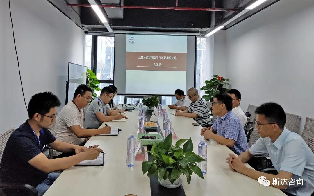 斯达咨询对玉林师范学院数学与统计学院各位领导、老师的来访交流表示热烈欢迎,并简要介绍了公司目前的发展情况和行业发展趋势。