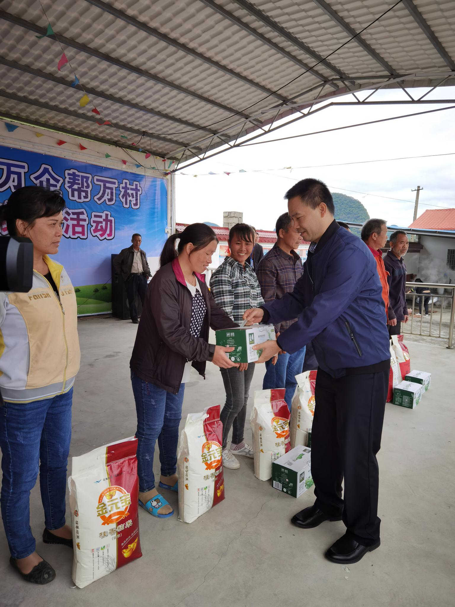 10月17日上午,在柳江区民政局的精心组织下,斯达咨询总经理夏状、运营部总监、支部副书记黄贵新、高级客户经理覃旭金一行3人来到里高镇保仁村,开展“万企帮万村”助力决战决胜脱贫攻坚慰问活动,为保仁村所有建档立卡贫困户及三合村、果郎村部分建档立卡贫困户送上温暖和爱心。