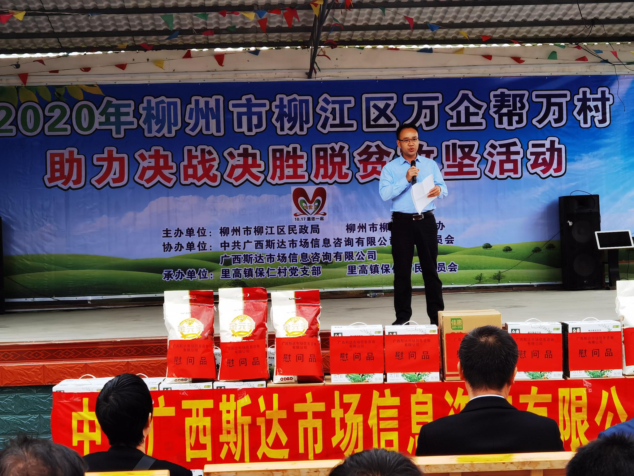 2020年10月,斯达咨询同柳江区民政局来到高镇保仁村,开展“万企帮万村”助力决战决胜脱贫攻坚慰问活动。