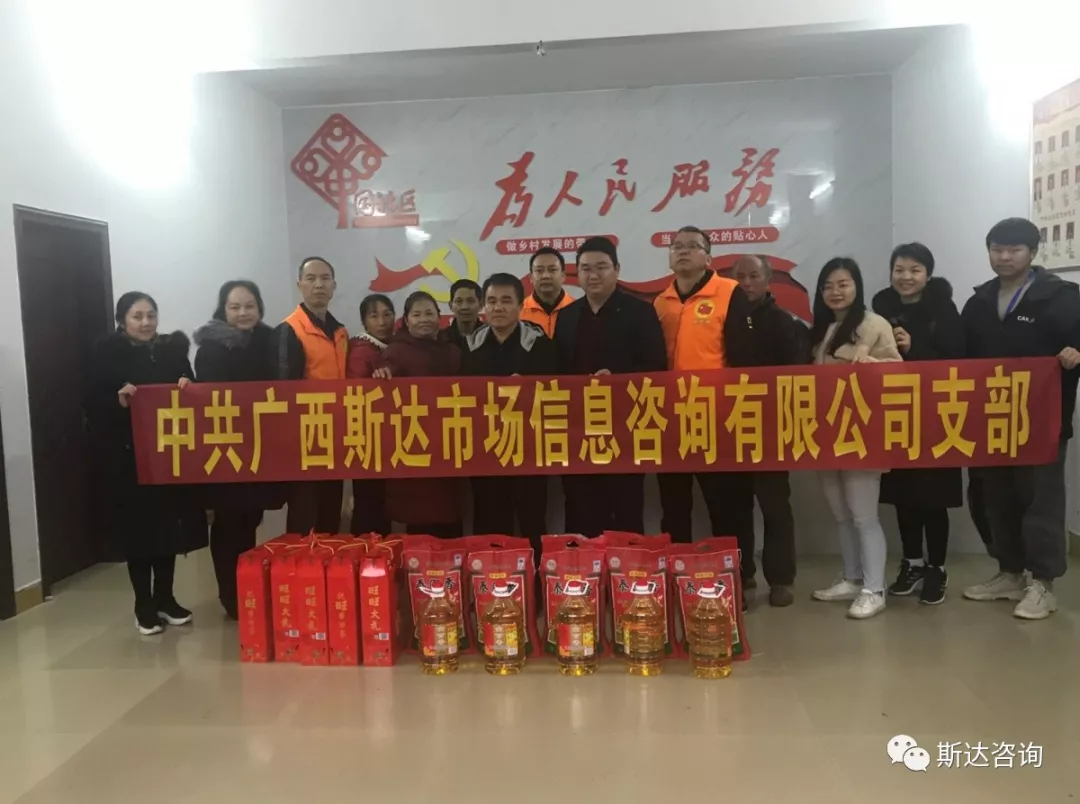 广西斯达市场信息咨询有限公司在中共广西斯达市场信息咨询有限公司支部的带领下,一直坚持“关心社会,为民服务”的理念,开展助力扶贫活动,传递民营企业正能量,致力打造社会救助服务数据咨询行业标杆。