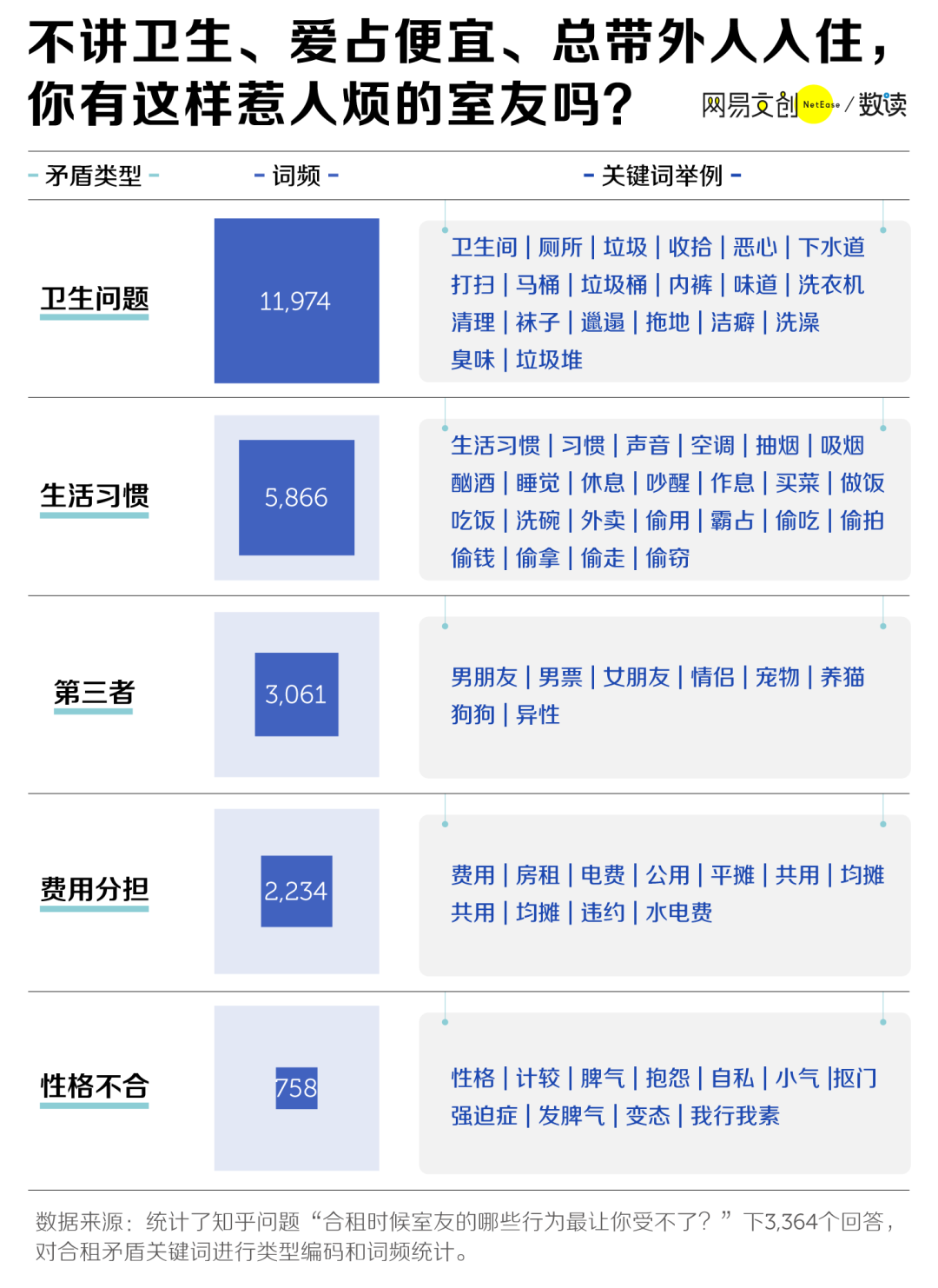 在微博上,“合租室友的哪些行为最让你受不了?”的问题得到了3000多条回答,堪比一场大型的室友吐槽会。
