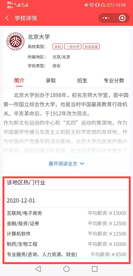 另一方面,本平台还分析了该院校所在城市的热门行业与平均薪资等多种院校有关的统计指标,直观体现院校的更多价值,多样化提供考量角度。
