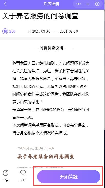 完成问卷任务将会获取200积分,每“100积分”即可置换1元钱,每满“10元”即可提现到微信零钱哦!