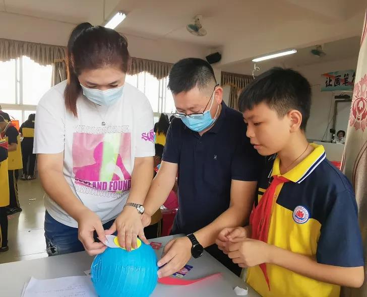 斯达数字科技夏雄和爱心企业家黄霞与小朋友制作灯笼