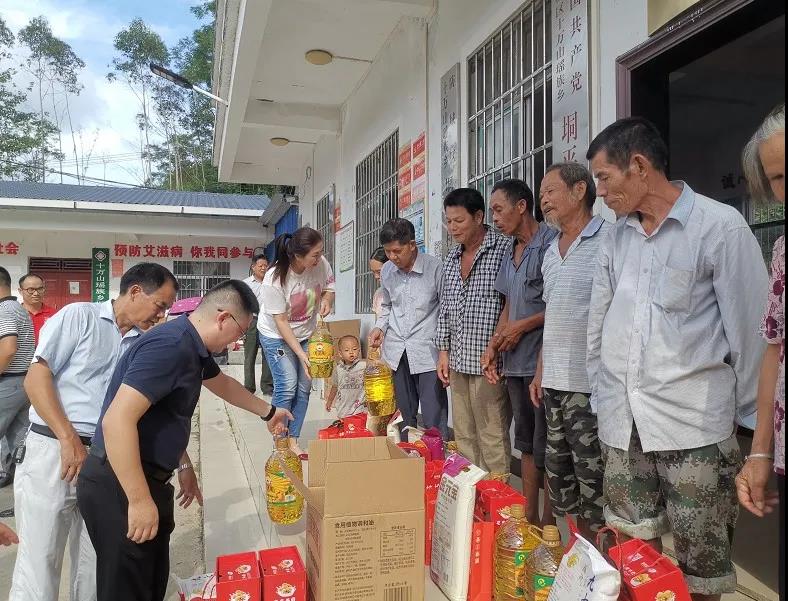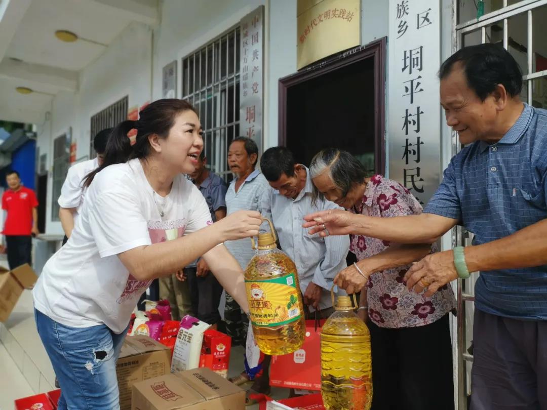 斯达数字科技夏雄和爱心企业家黄霞给大家分发食用油