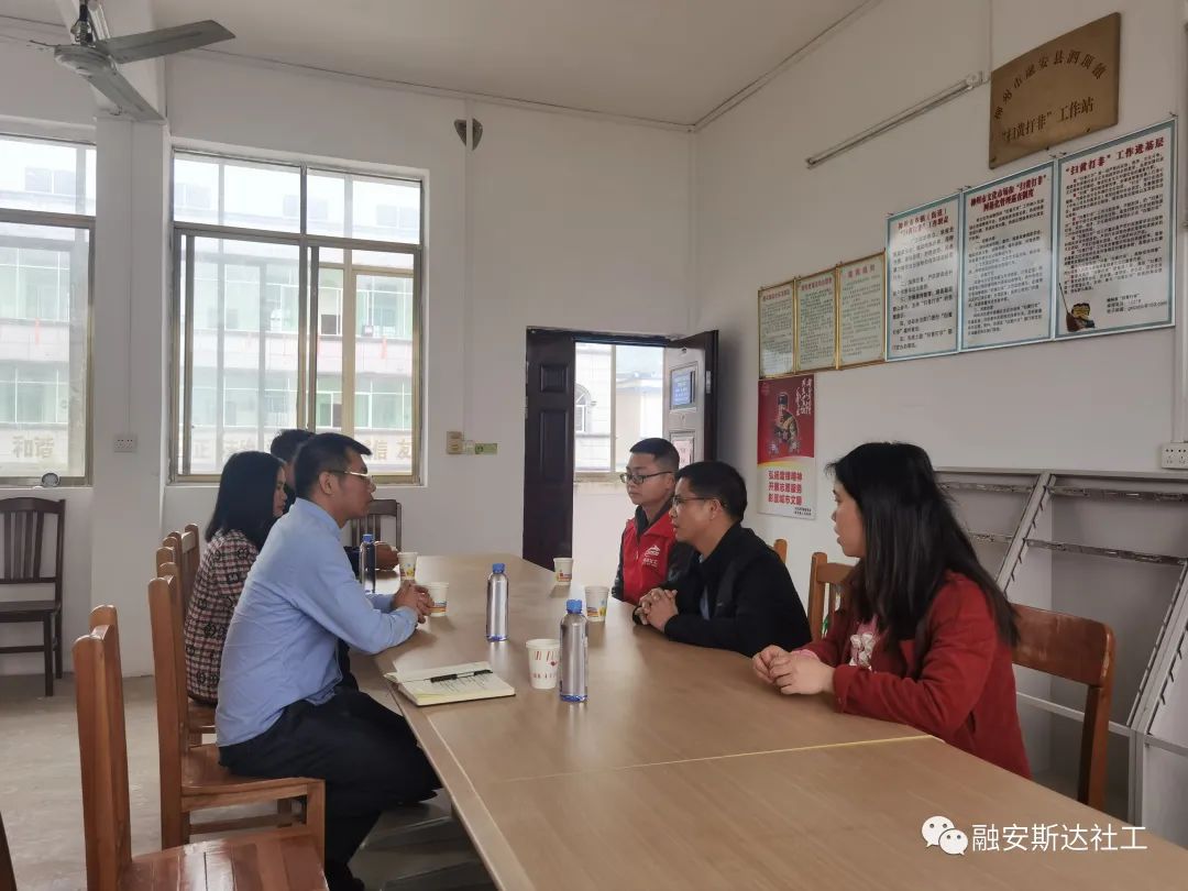 阳春三月,早长莺飞,又是一年新生的伊始,斯达社工中心从年前就在融安县各乡镇埋下了社工站建设的种子。为了解融安县各乡镇社工站建设情况及驻站社工在当地的工作现状和存在的问题,保障社工站建设的种子健康茁壮地成长,3月10-11日,斯达党支部书记覃宾梅、斯达社工中心理事长夏状、民政事业部主任黄贵新和项目督导杨丽静一行人深入走访融安县各乡镇社工站,了解建设情况。在慰问一线驻站社工的同时给予现场督导和解惑,并和各乡镇分管领导共同探讨如何建设好乡镇社工站,发挥好社工站的服务作用。