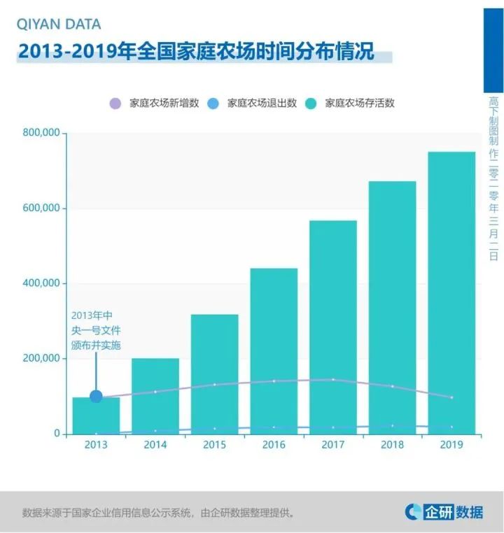自2013年至2019年10月在各级工商行政管理部门登记在册的约85万户家庭农场的工商注册信息,其中62万户登记为个体工商户组织形式,23万户登记为个人独资企业、合伙企业和有限责任公司等企业组织形式。