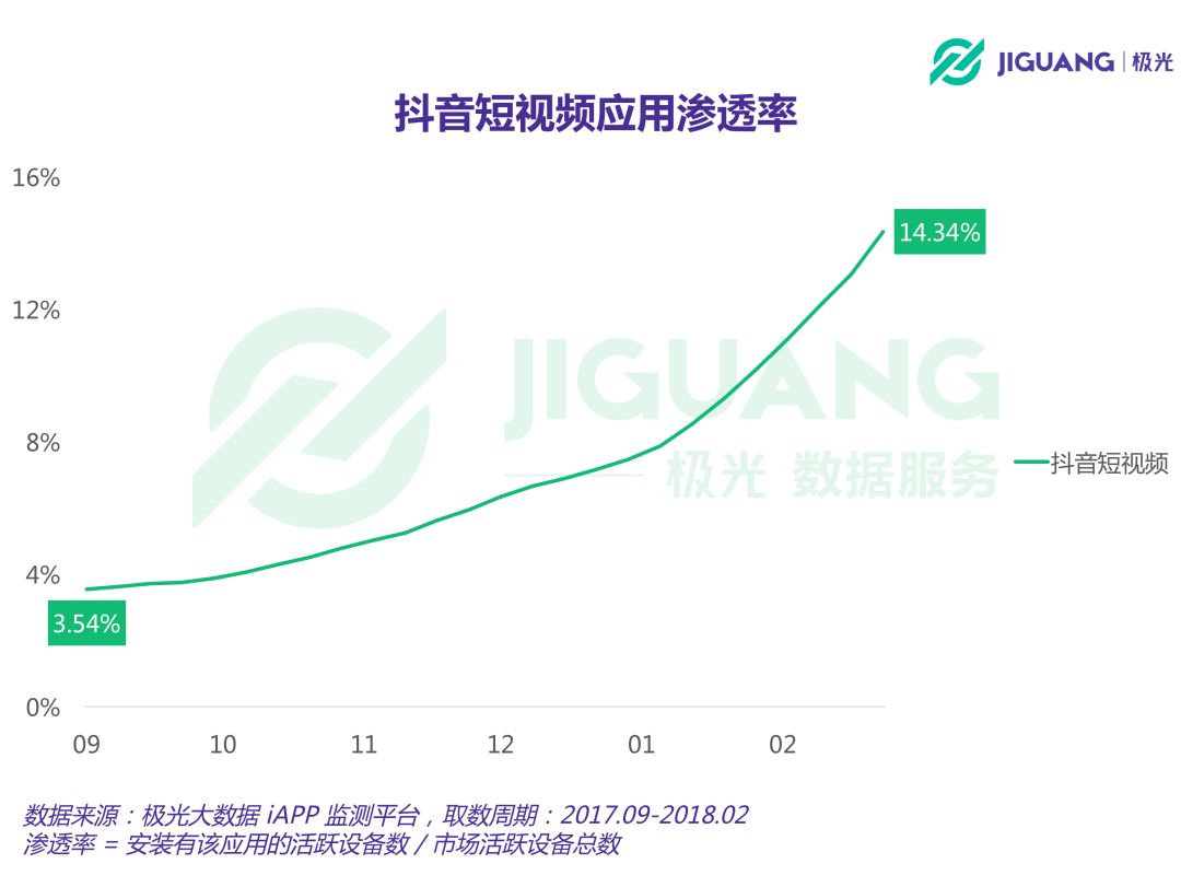 平均每100个移动网民中有14个是抖音用户,月均DAU超3,200万