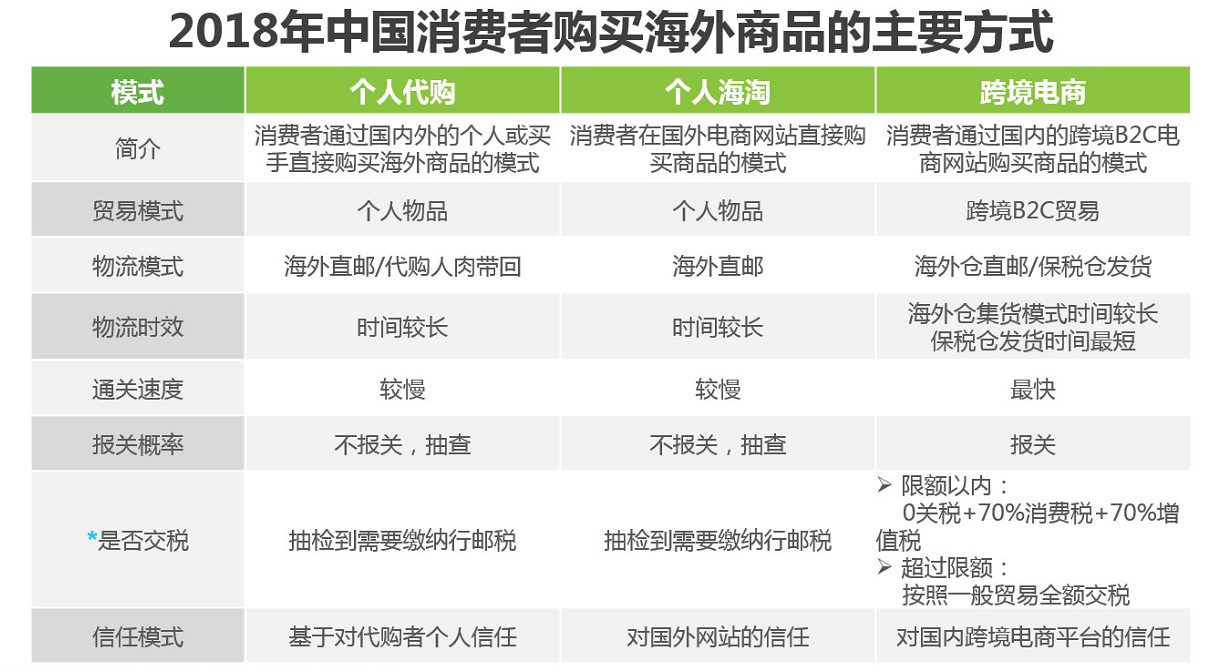 跨境电商模式为主流,个人代购和个人海淘存在灰色地带