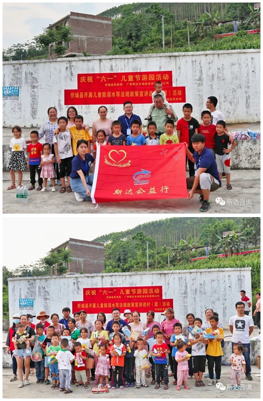 斯达数字科技公司常务副总夏雄先生和忻城县民政局副局长樊兰莹来宾市忻城县城关镇古麦村小学“六一”活动慰问,覆盖学生捐赠对象80人。