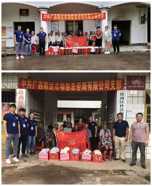 (4)由常务副总经理夏雄先生和党支部书记覃宾梅女士率斯达数字科技公益行小组与灵山县副县长李翠平、灵山县民政局劳春燕到灵山县福利院及武利镇敬老院进行慰问活动,捐赠对象40人。