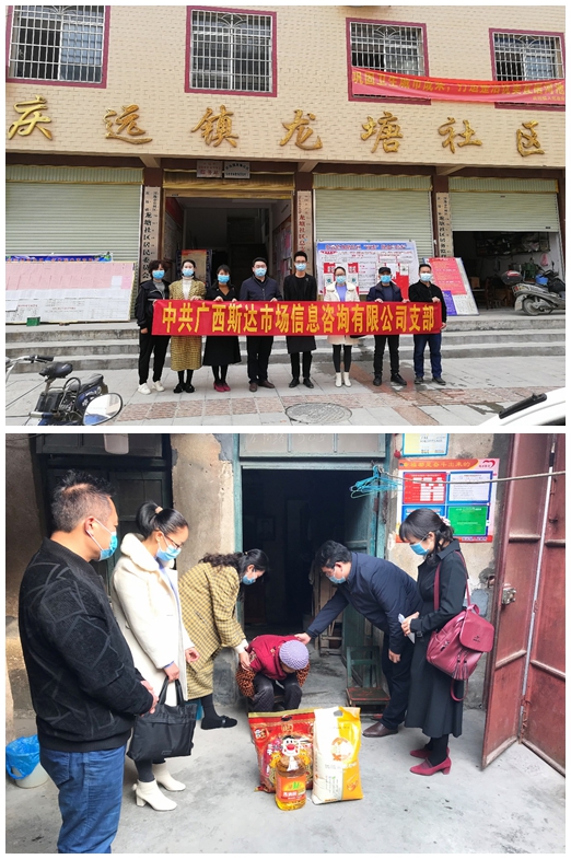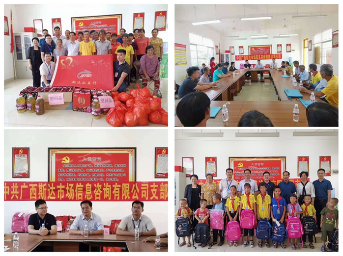 中共斯达市场信息咨询有限公司党支部书记覃宾梅、斯达数字科技公司常务副总夏雄先生和象州县民政局局长兼局党组书记吴世平和带上慰问物资和慰问金来到了象州县大乐镇龙屯村开展慰问,捐赠对象18户。