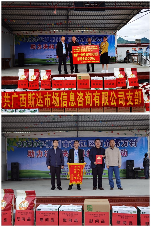 斯达数字科技总经理夏状、运营部总监、支部副书记黄贵新、高级客户经理覃旭金一行同柳江区民政局来到里高镇保仁村开展“万企帮万村”助力决战决胜脱贫攻坚慰问活动,捐赠对象48户。